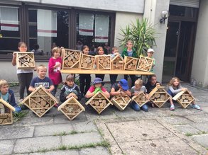 Nach einer kurzen Einführung über das Leben und Überleben von Insekten in der von uns Menschen geprägten Umwelt, machten sich die Kinder begeistert an die Arbeit.