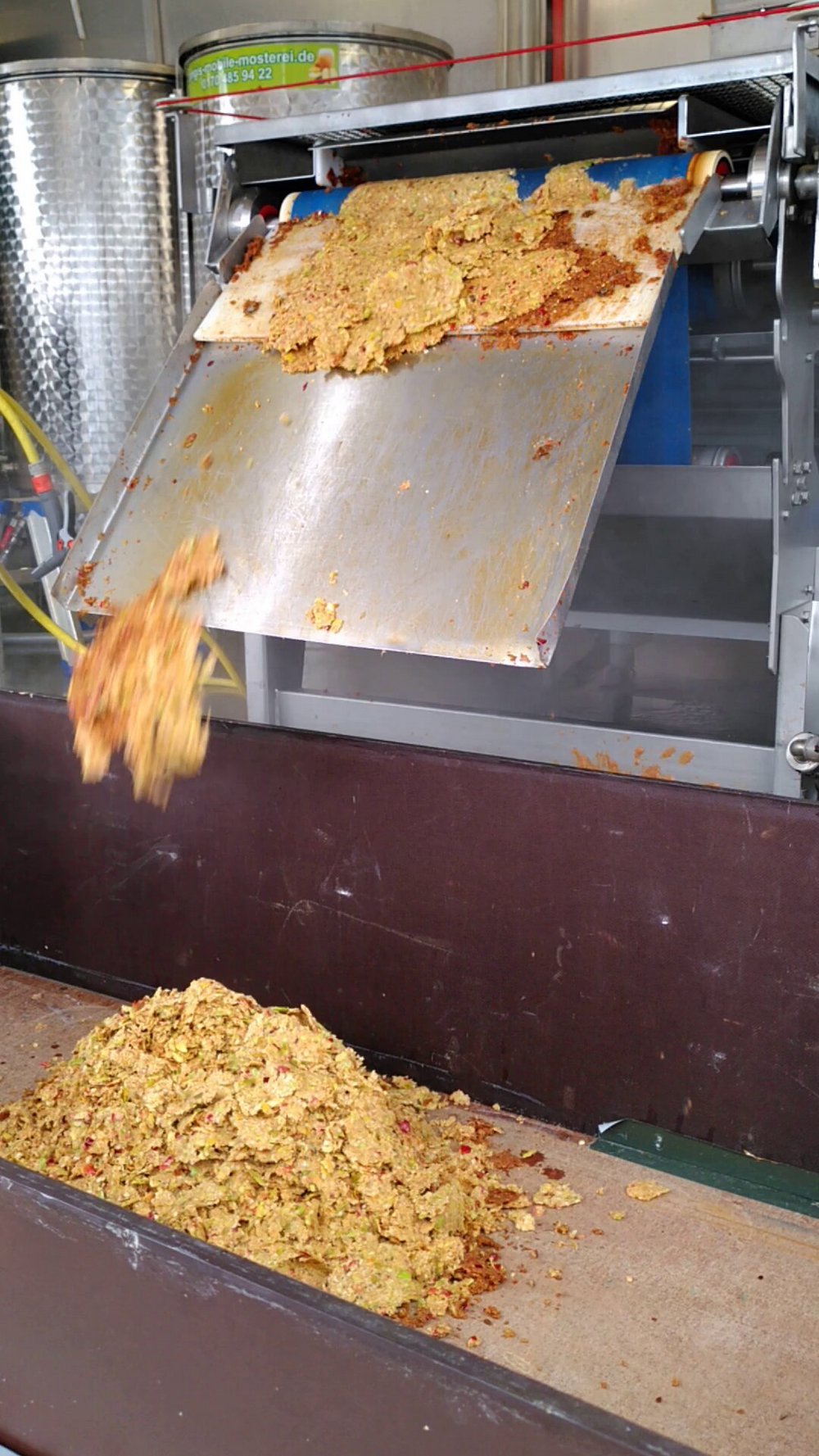 Der holte die Mosterei Billing aus Weißenburg mit ihrer mobilen Bandpresse auf den Parkplatz des Petersauracher RKW-Werkes. Großzügig stellte das Werk der RKW-Gruppe nicht nur den Parkplatz, sondern auch kostenlosem Strom- und Wasseranschluss zur Verfügung.